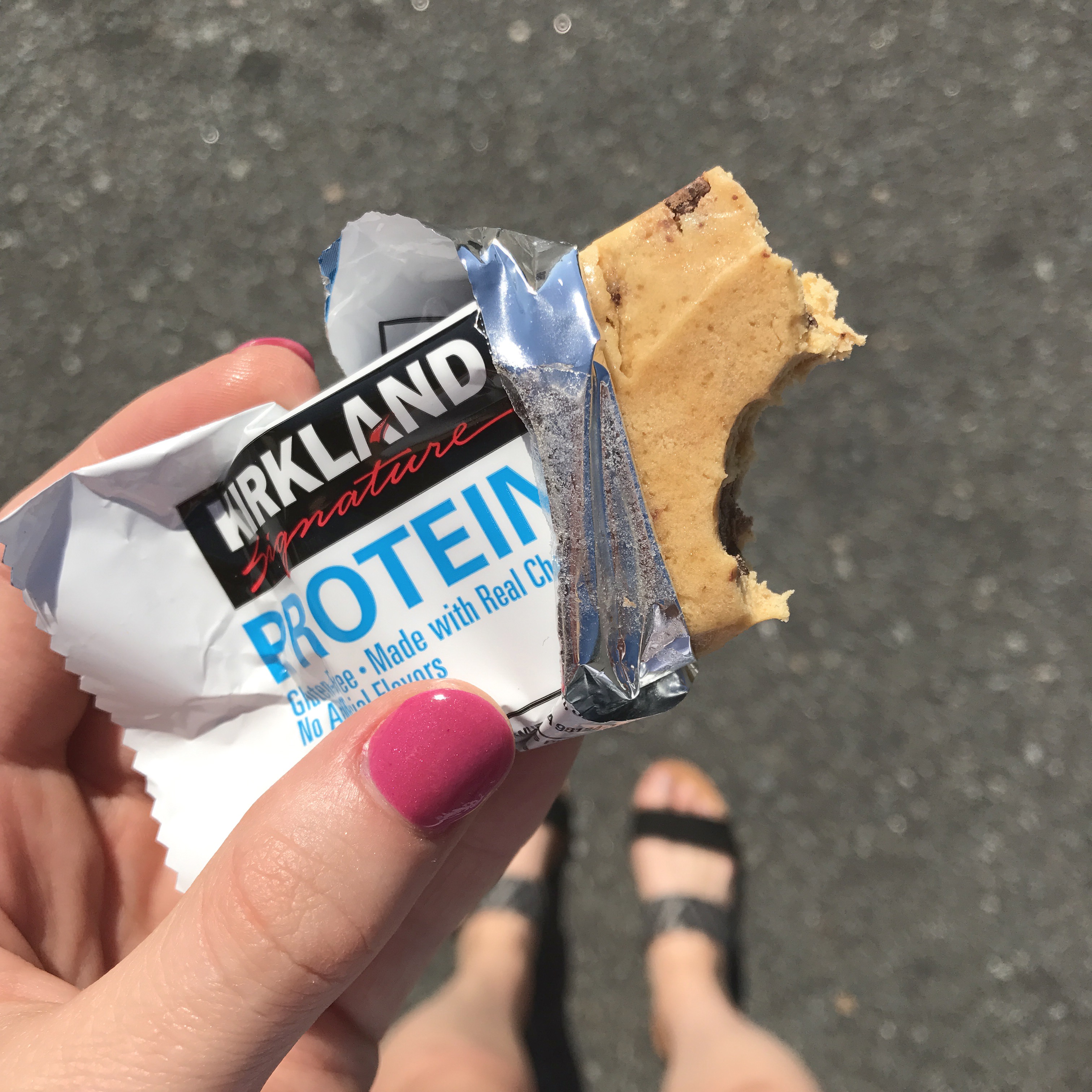 I can’t get enough of Costco’s Kirkland brand protein bars lately (especially the chocolate chip cookie dough-flavored ones), and love their nutritional stats, the taste of the bar, and their portability as well. I always have some on hand in Maggie’s diaper bag or my purse for a quick, on-the-go healthy snack.